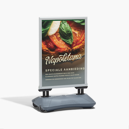 We bieden allerlei soorten duurzame buitenreclame die bestand is tegen slecht weer. Daaronder vallen waterbestendige opties die je langere tijd buiten kunt laten, maar ook draagbare borden die je makkelijk binnen of buiten kunt zetten wanneer dat nodig is.