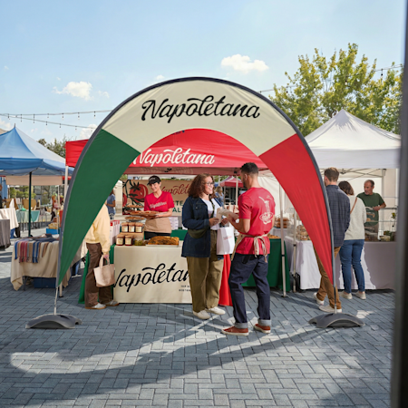 Plaats spandoeken en gemakkelijk verplaatsbare posterstoepborden voor je winkel om de aandacht van passanten te trekken. Waterafstotende, lichtgewicht vlaggen wijzen mensen de weg naar je evenement of terras, waar je hen kunt verwelkomen met bedrukte spandoeken van vinyl die niet te missen zijn. Gebruik kleurrijke meshdoeken of waterbestendige buitenposters om je ruimte op een markt of outdoor evenement te personaliseren en op te laten vallen in de massa.