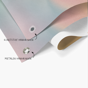 Onze niet-geweven spandoeken zijn ontworpen om indruk te maken, of je ze nu korte tijd buiten (tot twee weken) of langdurig binnen gebruikt. Je kunt hangringen van aluminium of polycarbonaat in de hoeken, aan specifieke kanten of helemaal rondom toevoegen om ze makkelijk op te kunnen hangen. Er is ook wit of zwart elastisch koord beschikbaar waarmee je ze veilig aan haken of hekken kunt bevestigen. En met afwijkende formaten van 50 tot 500 cm breed en 50 tot 313 cm hoog kun je letterlijk een spandoek ontwerpen dat past bij je wensen.