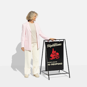 Kies je stijl, upload je logo of artwork, voeg je eigen tekst of afbeeldingen toe en laat ons de rest afhandelen. We gebruiken levendig, UV-bestendig drukwerk voor scherpe, professionele resultaten. Je ontvangt een klapbord dat je direct kunt gebruiken om binnen of buiten de aandacht van klanten te trekken.