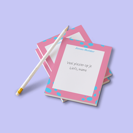Al onze benodigdheden voor het nieuwe schooljaar kunnen gepersonaliseerd worden. Van de kleinste pennen en notitieblokken tot de grootste foamboarden en sporttassen: je kunt ze allemaal personaliseren met namen, schoollogo's en nog veel meer. En als je hulp nodig hebt, staat ons ontwerpteam altijd voor je klaar.