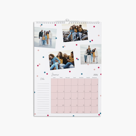 Sur les calendriers à plusieurs pages, vous pouvez intégrer des photos à chaque mois. Vous pouvez même les personnaliser avec du texte et des cliparts pour mettre l’accent sur des dates ou des évènements importants.