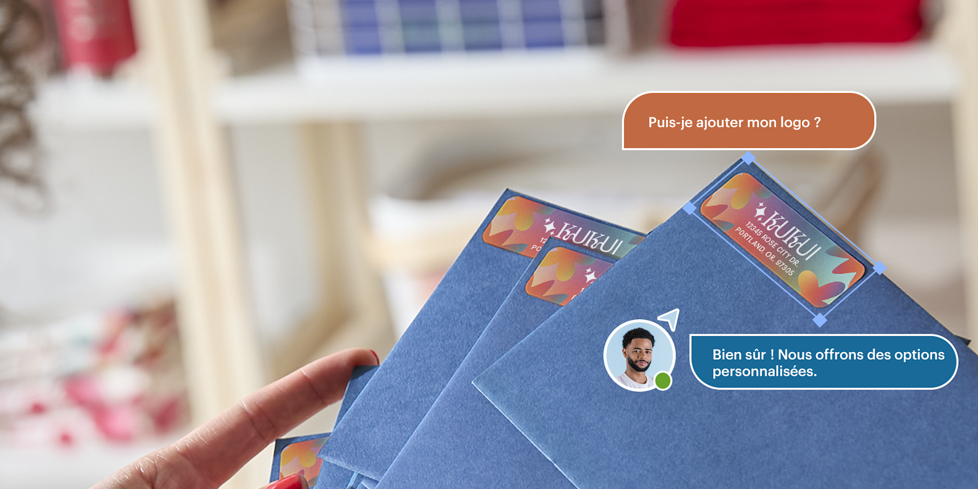 Chaque enveloppe et colis est une opportunité de vous faire connaître. À la recherche d’étiquettes d’expédition, d’autocollants pour enveloppes ou encore d’étiquettes d’adresse ? Nous avons tout ce dont vous avez besoin. Créez un ensemble cohérent d’articles d’expédition qui reflète votre message.