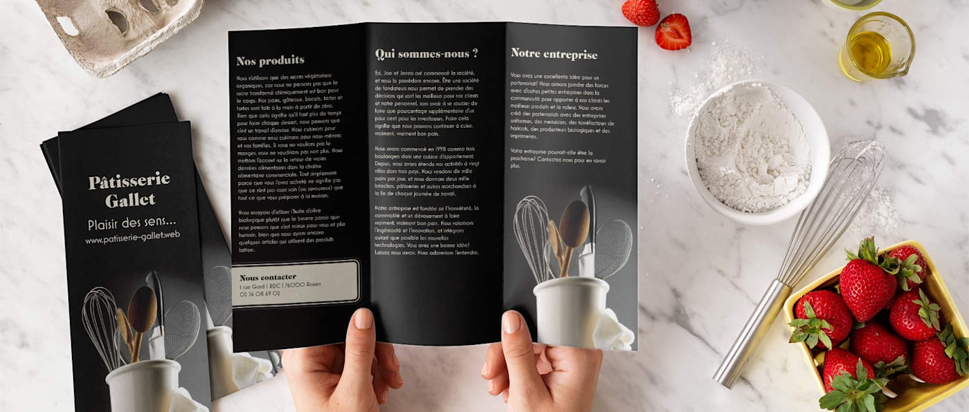 Lorsque vous vous estimez satisfait de la mise en page et de la présentation, choisissez le papier le plus adapté au style de votre dépliant, en gardant à l’esprit l’usage que vous allez en faire. Ainsi, les menus doivent être résistants si vous comptez les réutiliser. Quant au papier brillant, il est plus adapté aux couleurs éclatantes et aux photos de grande taille.