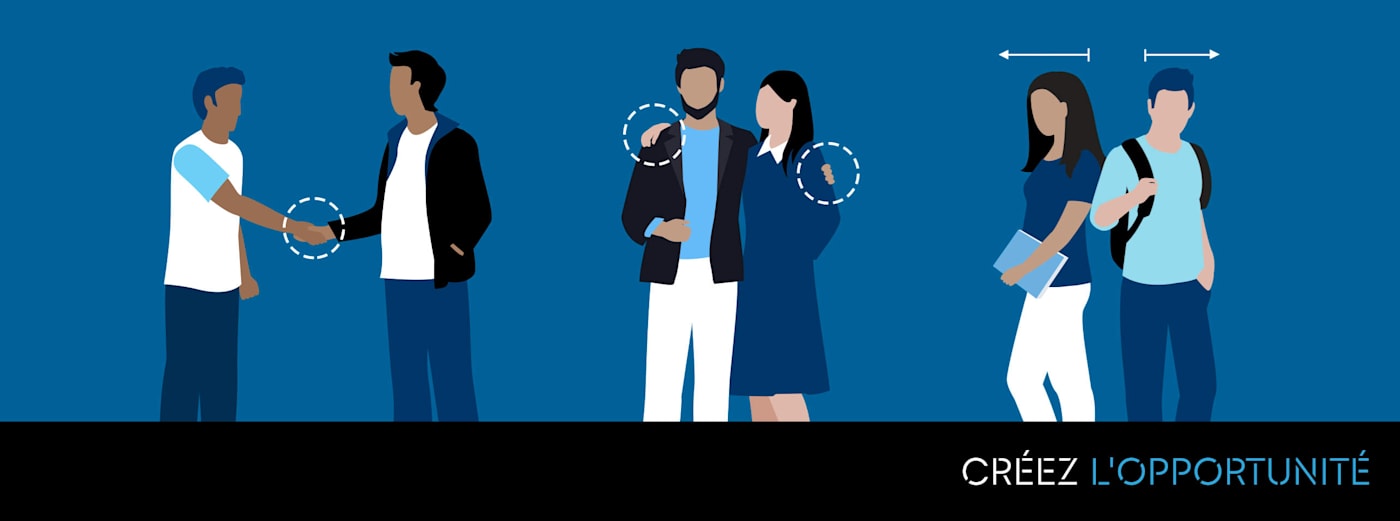 • Interactions plannifiées : À quelle distance se trouvent deux personnes quand elles se serrent la main ? Regardez ce que fait l’autre main pendant ce temps.