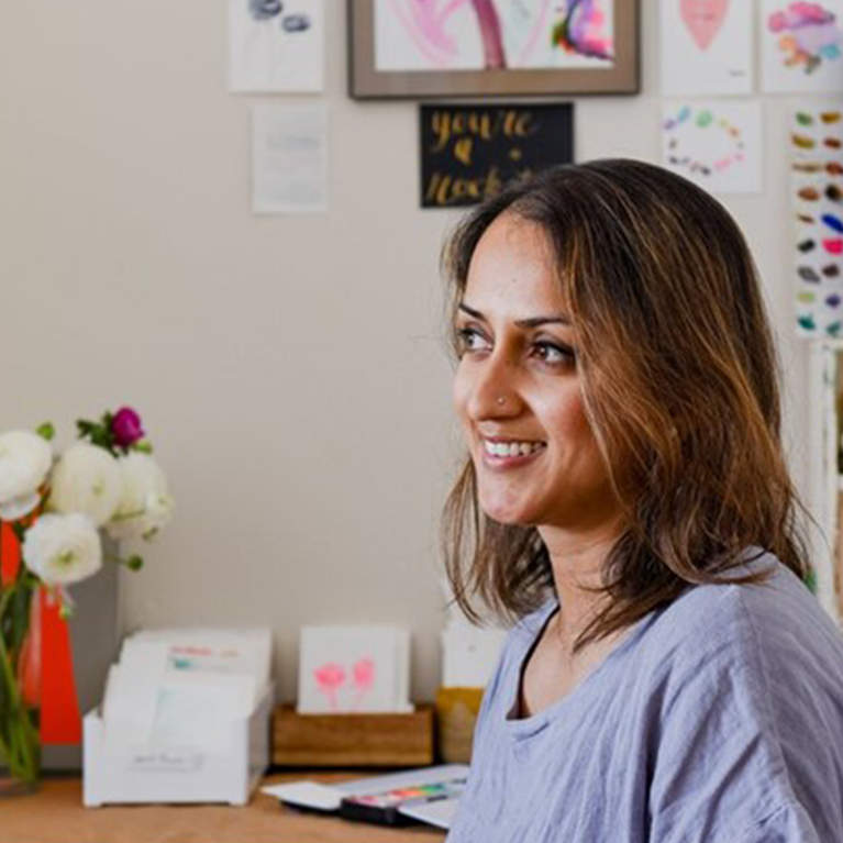 « Ma créativité a longtemps composé la toile de fond de ma vie d’épouse et de mère. Ces 25 dernières années, j’ai été salariée, puis sans emploi, et maintenant à mon compte. Faire tourner mon entreprise toute seule n’est pas simple, et j’ai dû apprendre à jongler entre différentes casquettes. Ma mère m’encourage à être une femme forte et indépendante… Dédions cette journée à toutes celles qui nous ont ouvert la voie. »