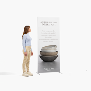 Nous savons que pour les petites entreprises, le temps, c’est de l’argent. C’est pour répondre à leurs besoins que nous avons conçu nos totems tubulaires. Clipsez les différents éléments de la structure et étendez le tissu sur le cadre : en quelques minutes, votre support pour banderole est prêt. Installez-le dans vos vitrines, dans les salles d’exposition et devant votre stand dans les salons professionnels. Si vous avez plus de texte à imprimer, vous pouvez même choisir l’option recto verso.