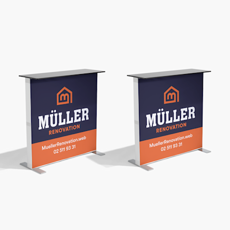Transformez votre espace événementiel avec des comptoirs pour stand qui s’installent en un clin d’œil. Leurs lignes épurées et leur design polyvalent vous permettent d’accueillir les participants, d’afficher vos produits ou d’organiser des démonstrations en toute simplicité. Vous pouvez ainsi vous concentrer sur ce qui compte le plus : créer des liens (et non sur le montage).