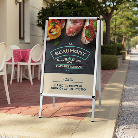 Oui, nous proposons des panneaux publicitaires recto verso, mais aussi des chevalets de trottoir.