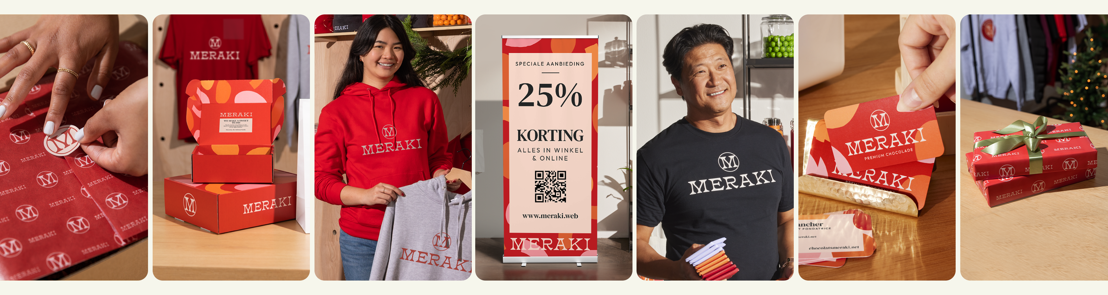 Opties voor buiten zoals klapborden, zelfklevende raamstickers en convexe beachflags vestigen de aandacht op je winkel. Binnen kun je roll-up banners of tafeldisplays gebruiken om deals uit te lichten. Combineer die met bijpassende kerstverpakkingen voor een consistente merkervaring.