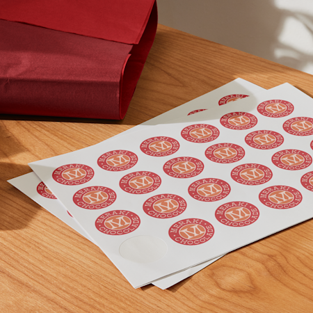 Stickers zijn ideaal voor het versieren van de buitenkant van tassen en bedrukt vloeipapier biedt bescherming en stijl. Om de puntjes op de i te zetten, kun je je tassen voorzien van een lint en een hang tag: kies optionele foliedruk voor een extra feestelijke glinstering.
