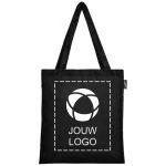 Het strakke ontwerp en het grote bedrukbare gedeelte maken van deze gepersonaliseerde RPET draagtas een favoriet om weg te geven als promotieproduct. Deze eenvoudig te ontwerpen draagtassen zijn licht van gewicht, waardoor je ze makkelijk meeneemt naar een handelsbeurs, conferentie of branche-evenement. Daarnaast is het een perfect alternatief voor plastic tasjes en laat je je merk op een milieuvriendelijke manier zien zonder dat het je veel kost. Maak deze klassieke tas helemaal eigen door je logo te uploaden in onze interactieve ontwerpstudio en een voorbeeld van het eindresultaat te bekijken. In de studio kun je makkelijk extra tekst toevoegen en de kleur en stijl bewerken. En als je hulp nodig hebt of een second opinion wilt, dan staan onze ontwerpexperts voor je klaar.