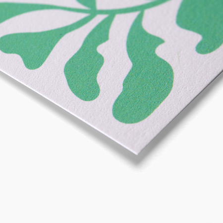 We bieden verschillende papiersoorten, papierdiktes en speciale afwerkingen voor de meeste ansichtkaarten. Mat, glossy en soft-touch zijn een aantal populaire papieropties, maar we hebben ook nog verschillende alternatieve opties en opties voor specifieke gebruikscases. Kijk op het tabblad Opties voor onze ansichtkaartopties met afbeeldingen en uitleg van alle verschillende materialen en selecties.