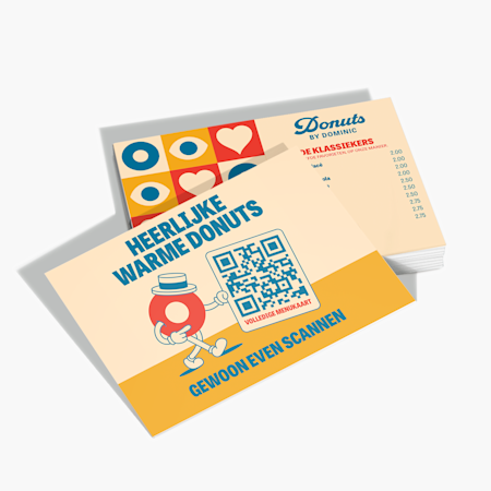 Ongevouwen menukaarten zijn vellen van 210 x 95 mm en kunnen aan de voor- en achterkant bedrukt worden. Ze zijn ideaal voor beperktere menu's of specialiteiten. Drieluik menukaarten hebben een formaat van 93 x 216 mm (gevouwen) met 6 verschillende panelen en bieden meer ruimte voor restaurantinformatie, foto's en nog veel meer.