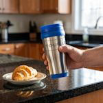 Houd je drankjes op de juiste temperatuur met deze dubbelwandige geïsoleerde reismok. Gemaakt van roestvrij staal met een schroefdop.