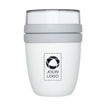 De lunch wordt nog handiger in de Mepal™ Ellipse Lunchpot. De lunchpot heeft twee vakken om de verschillende ingrediënten gescheiden te houden. Daarnaast is hij geschikt voor de vriezer, magnetron en vaatwasser. Vul het onderste en bovenste gedeelte rechtstreeks uit de koelkast met je favoriete kliekjes: soep, stamppot, paste of chili. Het blijft urenlang goed. Als je honger krijgt, kun je het onderste gedeelte in de magnetron zetten en heb je geen extra kommetje nodig. Het doorzichtige bovenste gedeelte kan niet in de magnetron, maar is wel geschikt voor tussendoortjes en ijs. Personaliseer je eigen lunchpot in onze intuïtieve ontwerpstudio en laat de aanwezigen onderweg je bedrijf promoten.