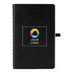 Maak beter notities met dit bedrukte notitieboek. Voelt luxueus aan als moleskine. Voorzien van gelinieerde pagina's, genaaide binding en handige elastische band met pennenlus.