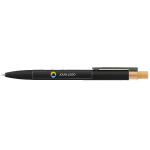 Verbeter je schrijfervaring met deze bedrukte pen. Voorzien van een modern ontwerp met een bamboe drukknop, een slaatblauwe clip en een inktpatroon met hoge capaciteit voor langdurige prestaties.