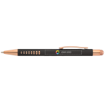 Verhoog de zichtbaarheid van je merk met deze stijlvolle styluspen die een elegant ontwerp combineert met dubbele functionaliteit. Maak indruk op klanten tijdens presentaties door moeiteloos te schakelen tussen aantekeningen maken met de pen en touchscreens bedienen met de rubberen styluspunt. Het artikel is eenvoudig aan te passen - voeg je logo, boodschap of info toe met behulp van onze intuïtieve studio. Hulp nodig? Onze designexperts zijn er om je te helpen je ideeën tot leven te brengen.
