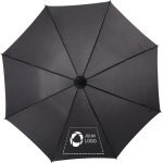 Blijf droog wanneer het weer omslaat met deze gepersonaliseerde paraplu. Voorzien van een houten handvat en stok met een duurzaam polyester scherm en metalen baleinen.