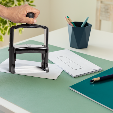 Onze stempeloplossingen bieden diverse aanpasbare opties om een unieke uitstraling voor je merk te creëren of je uitgaande post een persoonlijk tintje te geven. Je kunt uit verschillende mogelijkheden de optie kiezen die het best bij je past, onze geselecteerde sjablonen bekijken of je creativiteit de vrije loop laten en je eigen stempelontwerp uploaden.