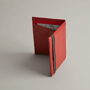 Bescherm je kaartjes (en laat zien dat je stijl hebt) met een houder van rood leer met stiksel. Details bekijken